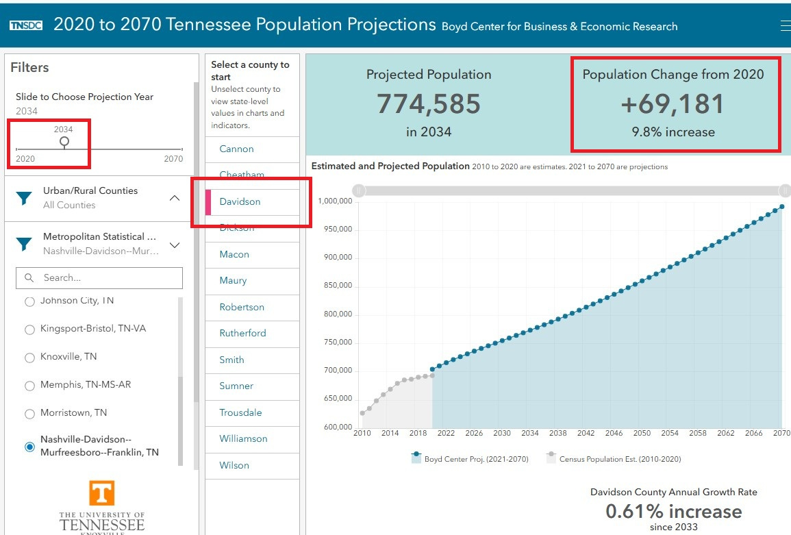 Source: Metro Nashville Unified Housing Strategy; UT Boyd Center for Business & Economic Research, 2020-2034 Projection.
